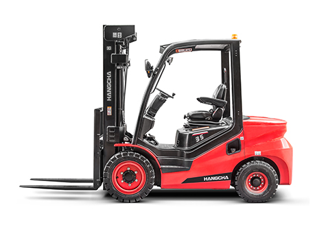 Le véhicule est doté d’un centre de gravité bas et d’une visibilité optimisée pour l’opérateur (contrepoids compact, incliné vers l’arrière).